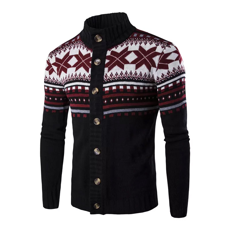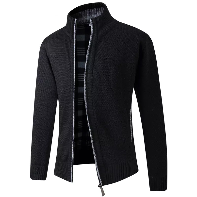 Men’s Cardigan Sweater Knitting Winter Full Zipper Long Sleeve Black
