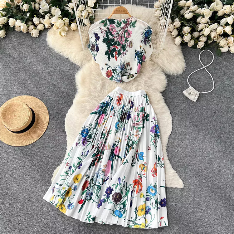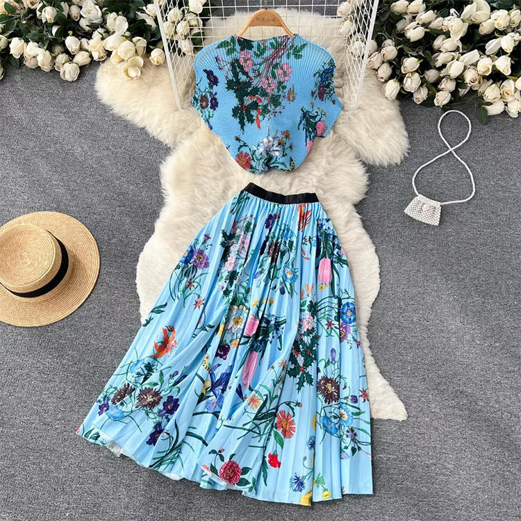 Women’s Printed High Waist Pleated Skirt Turquoise