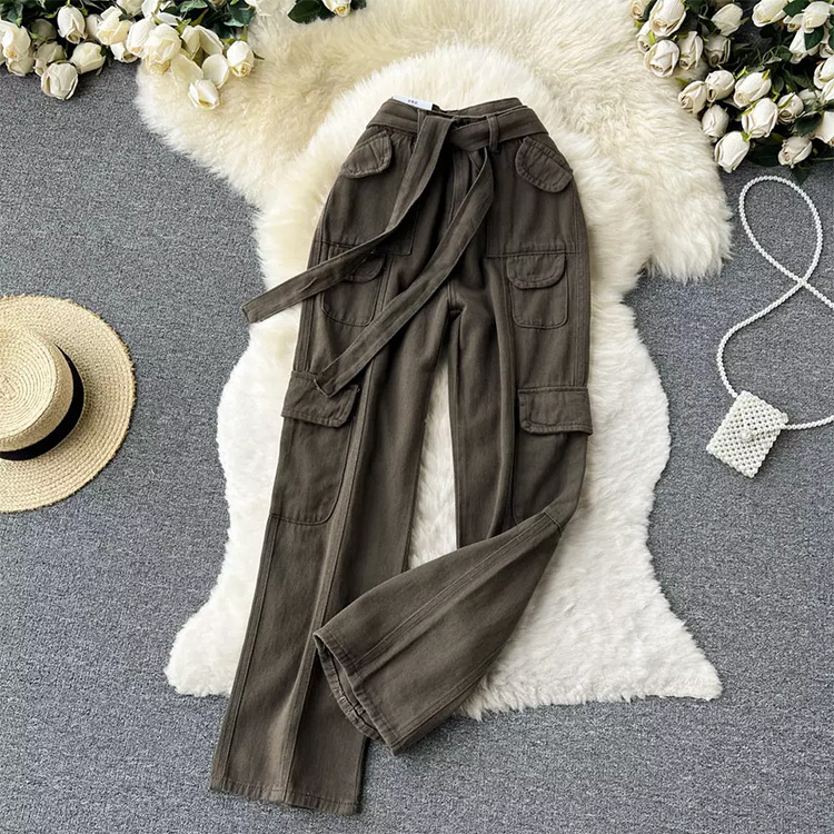 Women’s Loose Straight Trousers Army Green