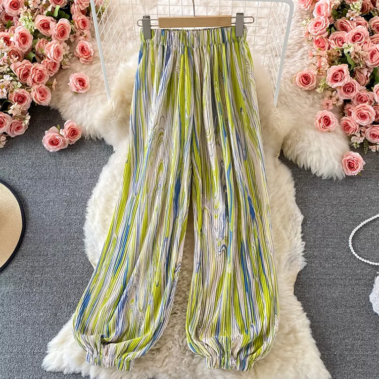 Women’s Elastic Pleated Harem Pants Blue Pink