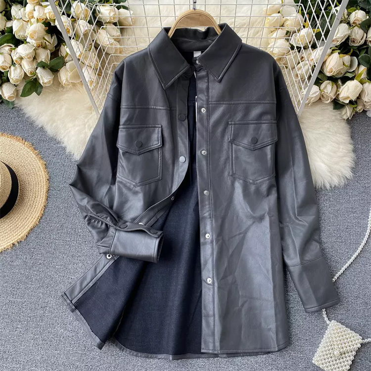 Autumn & Winter Medium Long Loose Coat Leather Black