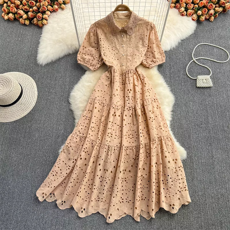 Women’s Short Sleeve V-Neck A-Line Dress Brown