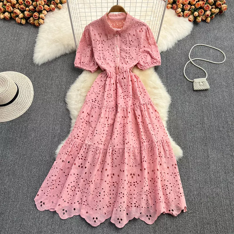 Women’s French Vintage Floral High Waist Dress Dark Pink