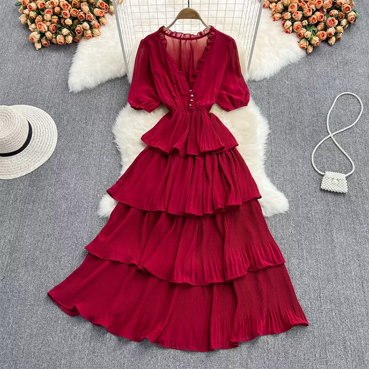 Women’s Short Sleeve V-Neck Dress Red