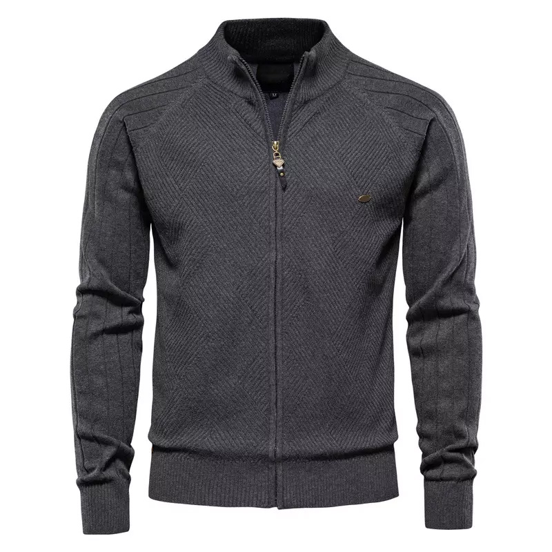 Men’s Cardigan Sweater Knitting Winter Full Zipper Long Sleeve Dark Grey