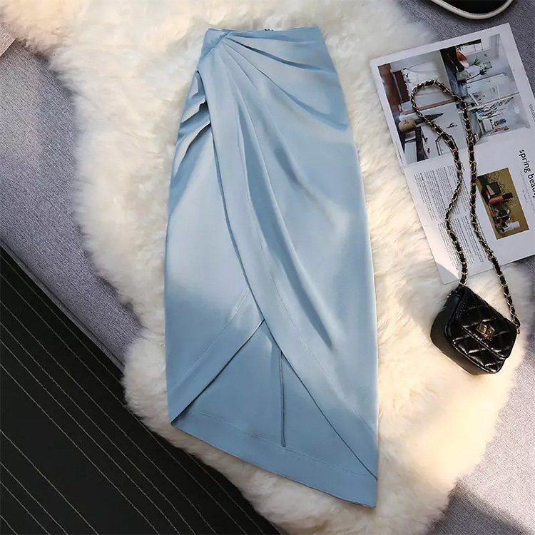 Women’s Asymmetrical Wrap Ruched Long Skirt Blue
