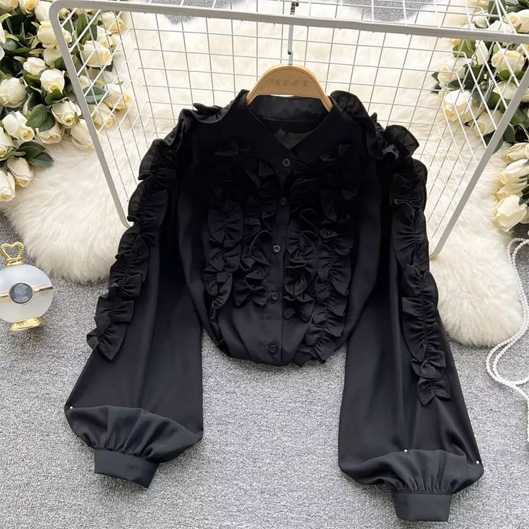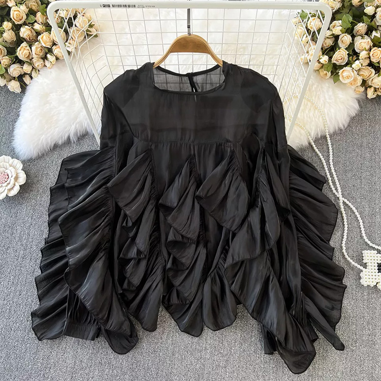 Women’s Vintage Ruffle Loose Long Sleeve Top Black