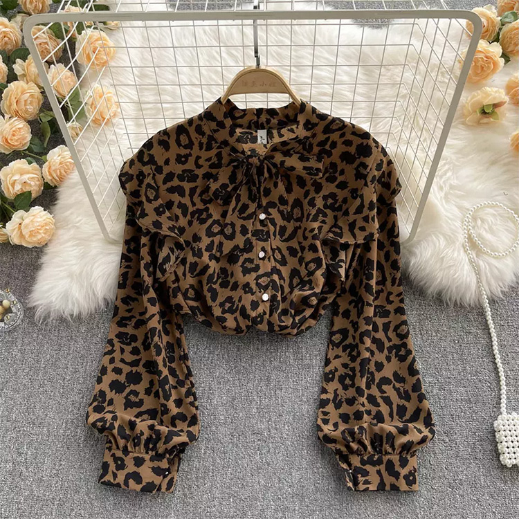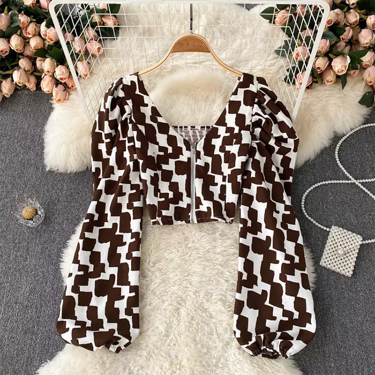 Women’s Vintage Loose Lantern Sleeves Blouses Brown